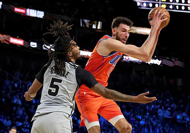 本场比赛中,雷霆虽然输掉了比赛,但是球队的先发大前锋切特-霍姆格伦(Chet Holmgren)的表现还是具备一定的亮点的,不过他也暴露了自己的一些问题。切特全场出场30分28秒,投篮8中3,三分线外3中1,罚球12中10,得到了17分7篮板1盖帽的数据,还有1次失误和3次犯规,正负值为+18。切特在进攻端虽然手感平平,但是他还是在对手内线制造了一定的威胁,并且起到了一定的作用,他也是靠着自己的经验得到了不少的分数。令人遗憾的是,切特虽然在面对卢克-科内特(Luke Kornet)时起到了很好的效果,但是在面对维克托-文班亚马(Victor Wembanyama)时,他在场上的作用就没有办法发挥出来,甚至他在身体天赋方面的优势也是荡然无存了。